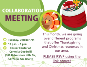 Our next meeting will be at the Career Center at the Cornelia Goodwill!