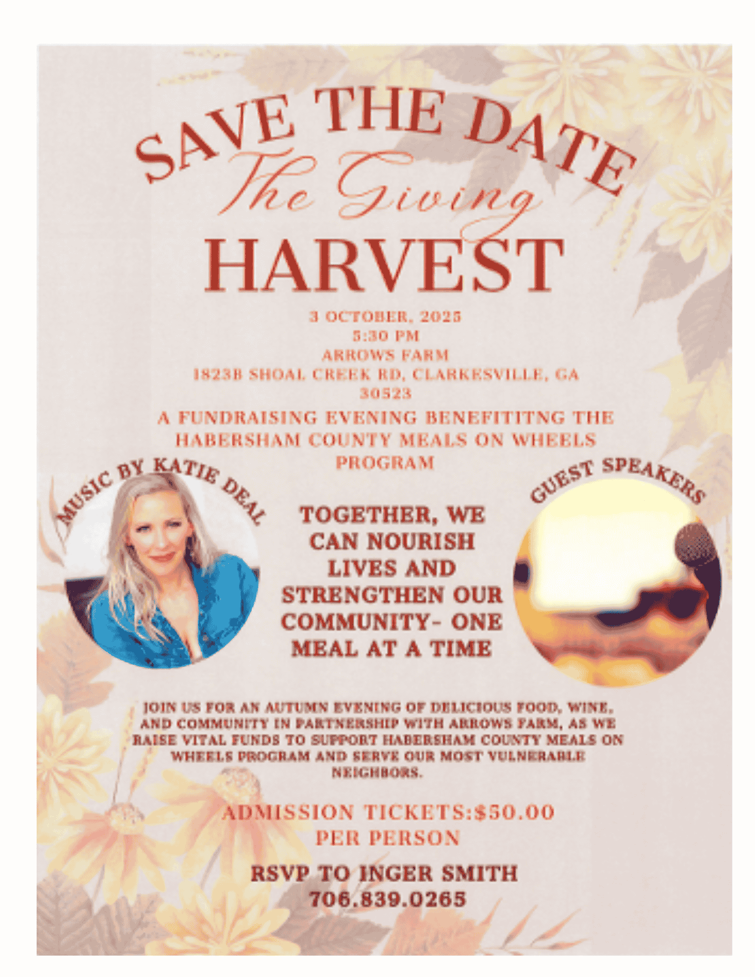 A fundraising evening benefitting the Habersham County Meals on Wheels program. Admission: $50 per person Join us for an autumn evening of delicious food,…